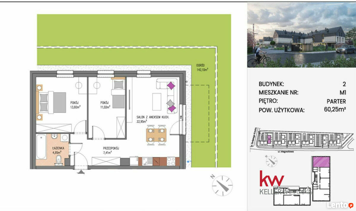 Nowoczesne 2-pokojowe mieszkanie w spokojnej okolicy pod Wrocławiem!Zapraszamy do zapoznania się z ofertą sprzedaży komfortowego mieszkania o powierzchni 60,25 m2, położonego w malowniczej i kameralnej inwestycji zlokalizowanej zaledwie 5 km od granic Wrocławia, w sąsiedztwie Świętej Katarzyny.