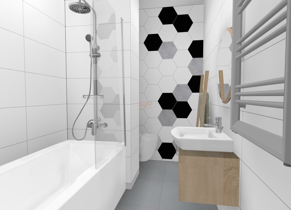 5. kompletna łazienka z wanną, podświetlanym lustrem, szafką pod umywalką