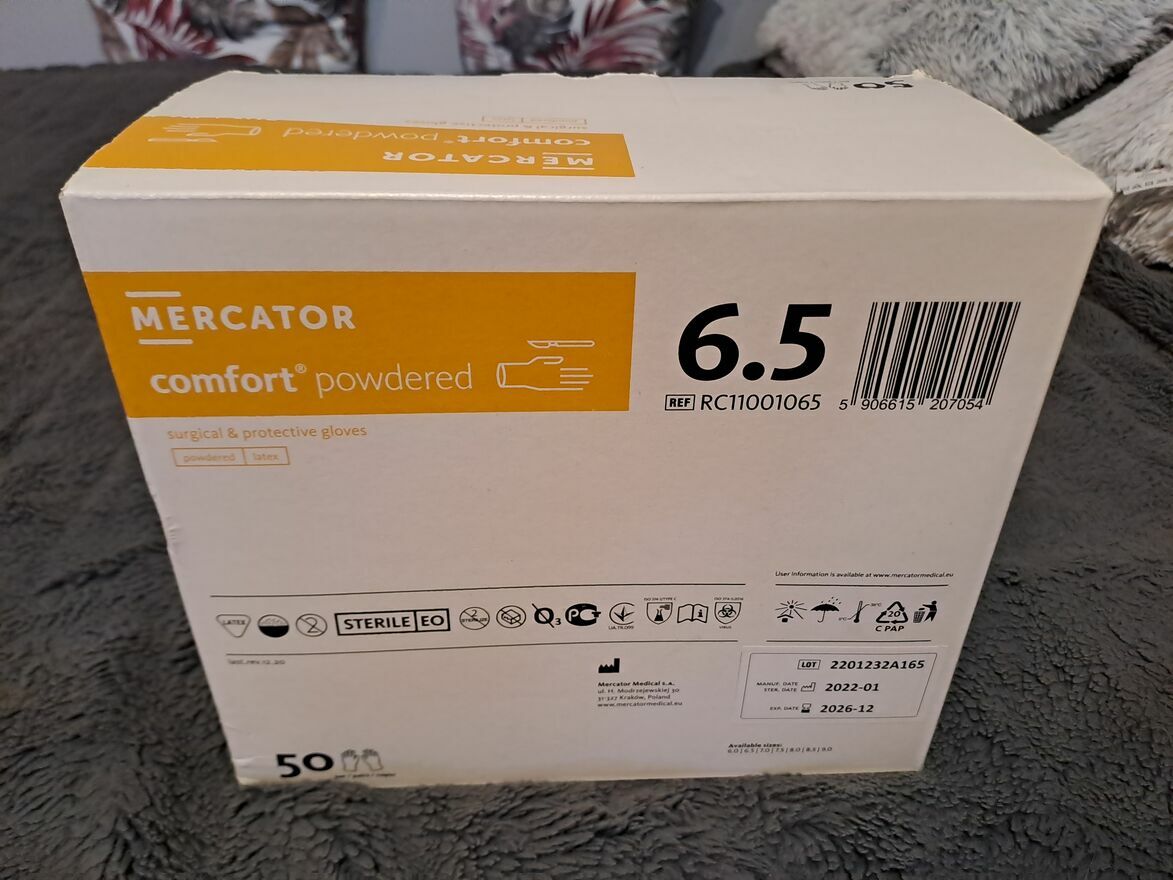 Sprzedam z 10 opakowań rękawiczki chirurgiczne sterylne 6,5 50 par pudrowane comfort powdered data ważności 2026-12. Cena za 1 opakowanie 30 zł.Sprawdź zainteresowanie tym ogłoszeniem