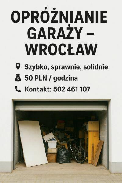 Opróżnanie garaży na terenie Wrocławia 50 PLN za roboczogodzinę Po uprzednim podstawieniu kontenera przez ...