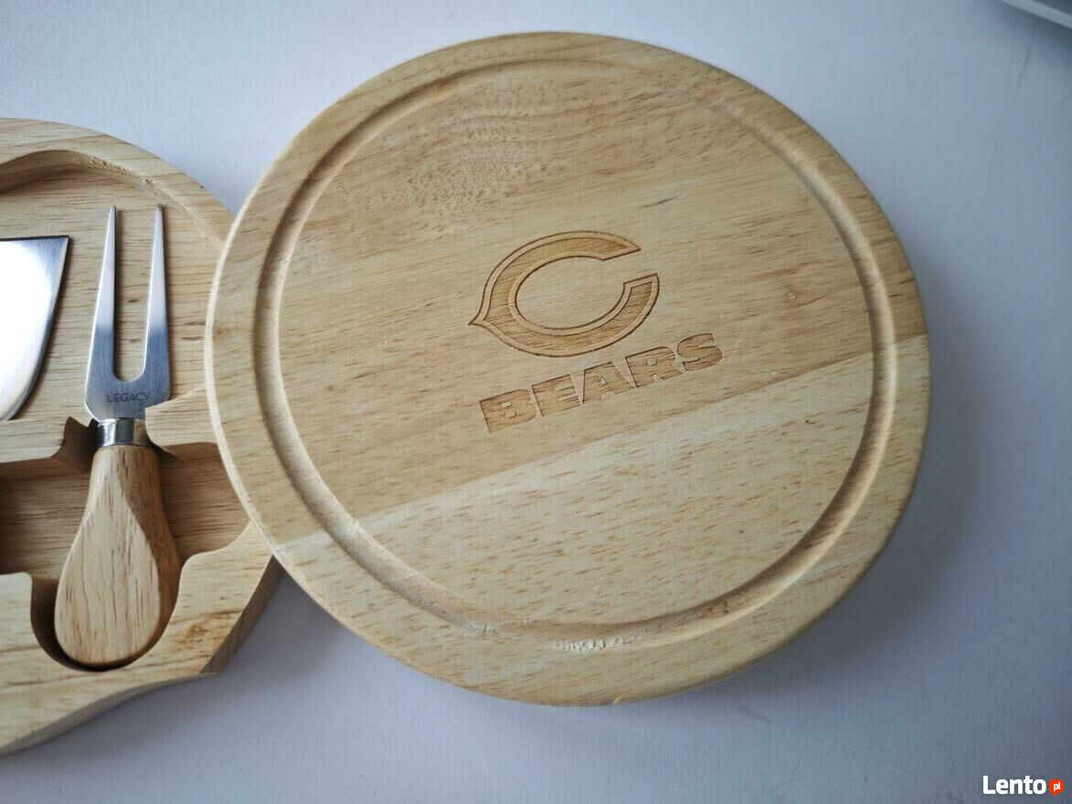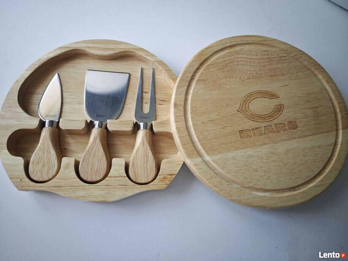 Na sprzedaż oferuję nowy, oryginalny zestaw do serów sygnowany oficjalnym logo drużyny NFL Chicago Bears. Jest to model Circo Cheese Board & Tool Set, produkowany przez renomowaną markę Picnic Time.Sprawdź zainteresowanie tym ogłoszeniem
